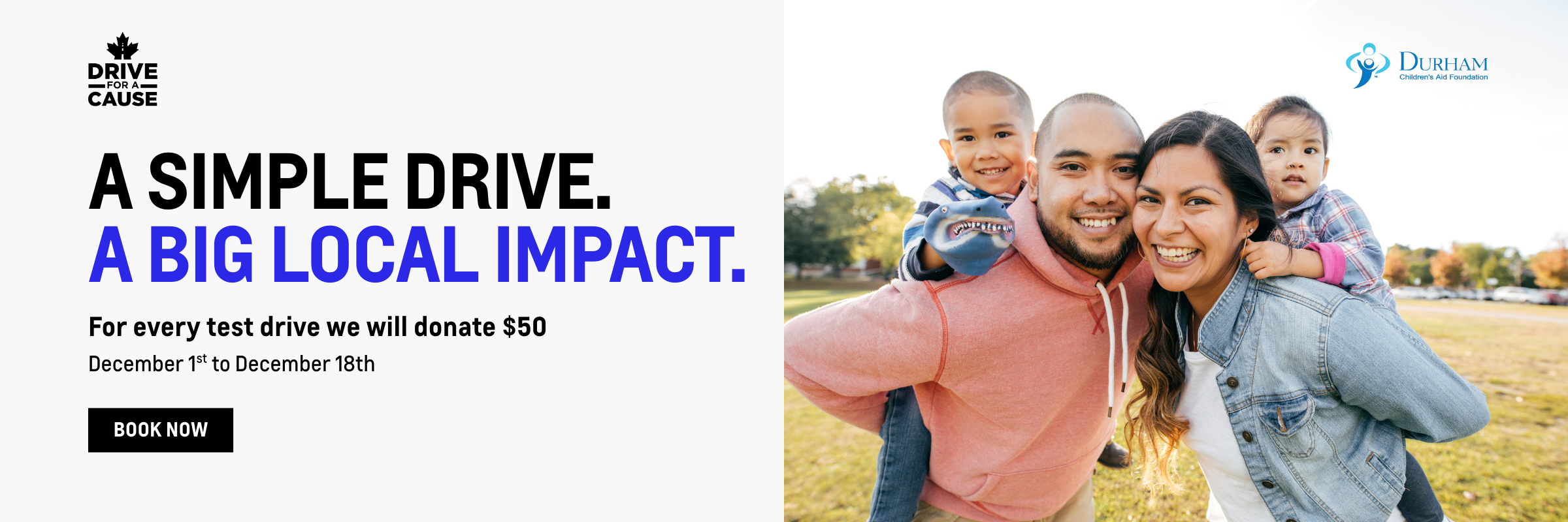 Drive for a Cause is our annual community initiative where Ontario Motor Sales donates $50 to a local charity for every test drive completed. This year, we’re proud to support the Durham Children’s Aid Foundation.